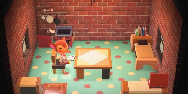 Además, la disposición alegre de Fauna se adapta a las actitudes excitantes que surgen al final y al comienzo de cada año. El interior de su casa en Animal Crossing: New Horizons cuenta con paredes de ladrillo y un interior luminoso, a pesar de la falta de decoraciones descaradamente invernales. El diseño rústico de sus muebles, combinado con la estufa roja y la encimera a juego, crea un ambiente pintoresco. Cruce de animalesEl aldeano más entrañable.