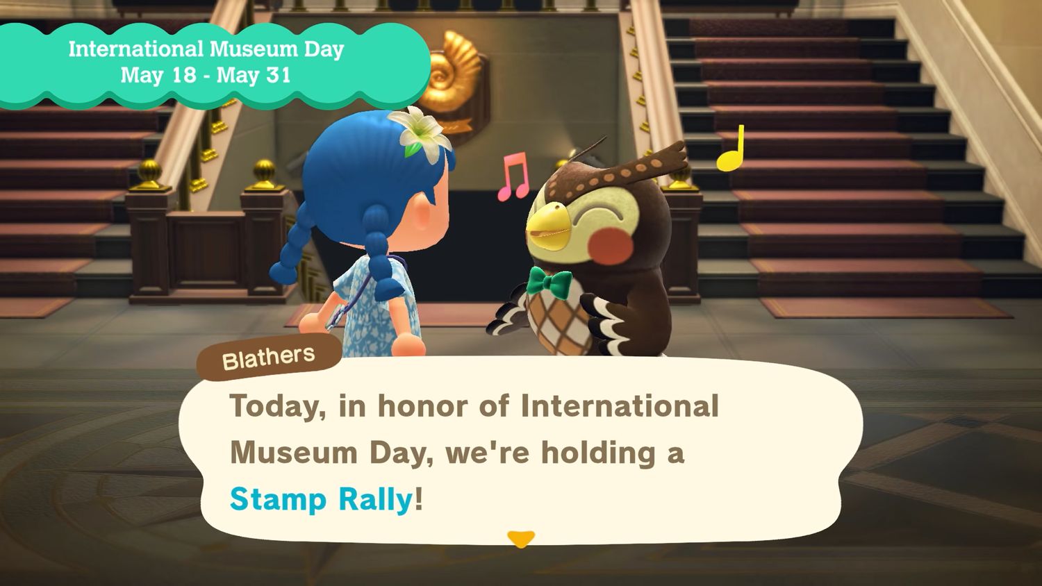 Día Internacional de los Museos también corre del 18 de mayo al 31 de mayo en ambos hemisferios. Durante este evento, los jugadores pueden participar en Blathers’ Stamp Rallies en el museo, lo que implica explorar las diferentes alas del museo de la isla para coleccionar sellos. Las recompensas incluyen un sello de finalización especial y placas exclusivas que los jugadores pueden vender o usar como decoración. Este evento es importante tanto para los aficionados a los museos como para los coleccionistas.