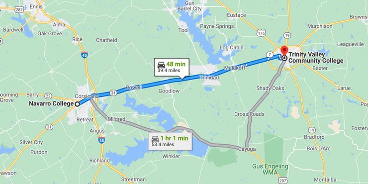 Anímate: ¿Qué distancia hay entre Navarro y Trinity Valley?