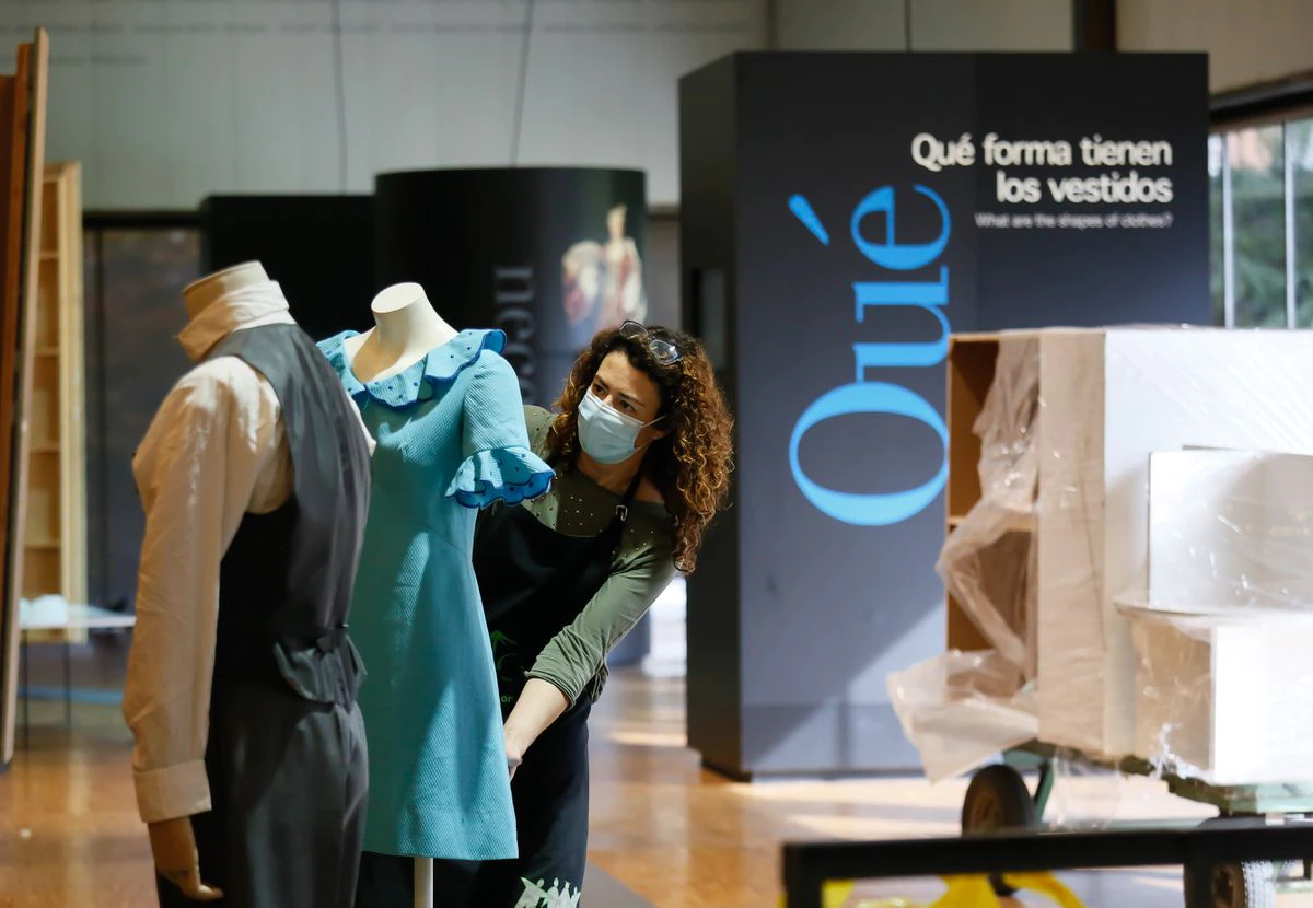 A pocos días de que se abra a los visitantes, el edificio bulle ultimando detalles. Un grupo de operarios nivela un cartel mientras un conservador comprueba un pantalón. El suelo está cubierto con los esquemas de colocación de las vitrinas. La directora recorre las salas saludando a cada uno por su nombre. “Paula, a ver si me puedes echar una mano con las gandayas, que no sé cómo ponerlas”. Para sumergirse en las entrañas del museo hay que descender hasta los mastodónticos almacenes sobre los que se cimienta, con salas de más de seis metros de altura. La arquitectura es consecuencia de la historia de la propia construcción, que se diseñó a finales de los sesenta para albergar el Museo de Arte Contemporáneo, pero que se vació tras la apertura del Reina Sofía. “Todos los espacios son muy grandes, aunque custodiamos piezas que no lo son tanto”. Indumentaria pero también cerámicas, carteles, juguetes, instrumentos musicales, electrodomésticos… un total de 180.000 referencias.