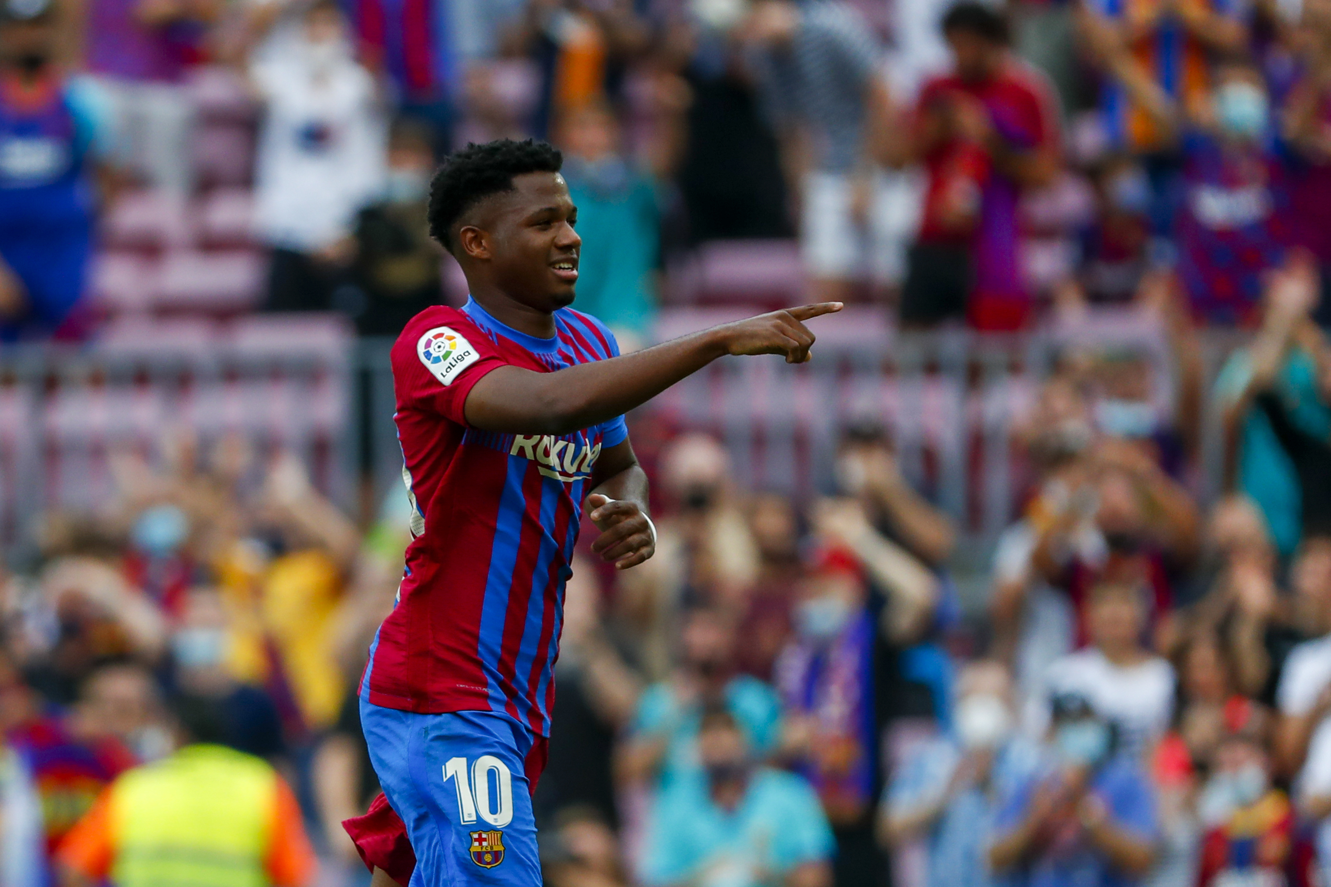 Messi se estrenó ante Osasuna en la Liga y marcó su primer gol contra el Albacete en 2005, momento en el que Ronaldinho le ofreció su espalda para que cabalgaran en el festejo. Leo era el niño mimado, el superdotado que estaba por llegar a un equipo repleto de estrellas como Deco, Eto’o, Xavi, Iniesta, Puyol… “A Messi se le dieron unos años y con Ansu debería pasar lo mismo. No se le puede exigir tanto. Además, son esperanzas compartidas porque también se cree en Pedri, Araujo…”, argumentan desde el área deportiva azulgrana. Y es que no es lo mismo jugar con pesos pesados que compiten por la Champions que con canteranos por explotar [como Gavi, Nico González y Balde], por más buena pinta que tengan. Así que Ansu no se subió a los lomos de nadie, sino que fue aupado entre todos en una imagen tan icónica como expresiva, un líder de 18 años que lleva el 10 a la espalda, el glorificado dorsal de Messi. “Gracias a los capitanes y al club por darme esta oportunidad”, resolvió el extremo; “no lo veo como presión sino, que es un orgullo para mí”. Desde las oficinas de la Ciudad Deportiva lo valoran, conscientes de su personalidad, pues descartó al hermano de Messi (Rodrigo) como representante, sabiendo lo que podía significar.