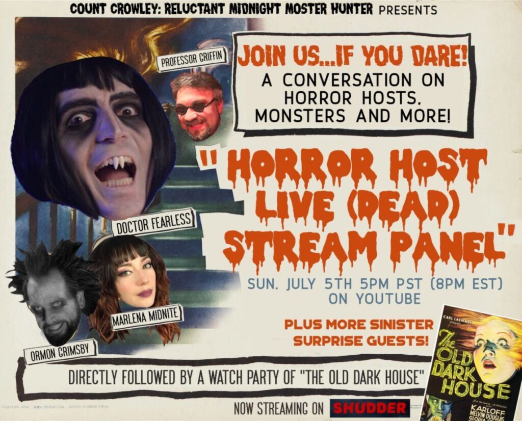 “Crecí escabulléndome abajo para ver la legendaria característica de criatura de Crematia Mortem y desde entonces me he enganchado a los anfitriones de terror”, dice Dastmalchian. “Creando al conde Crowley, conociendo leyendas como Svengoolie y ahora organizando esta noche especial celebrando anfitriones y nuestro colectivo El amor por la cultura del anfitrión del horror ha llenado mi frío y muerto corazón con una monstruosa alegría “.