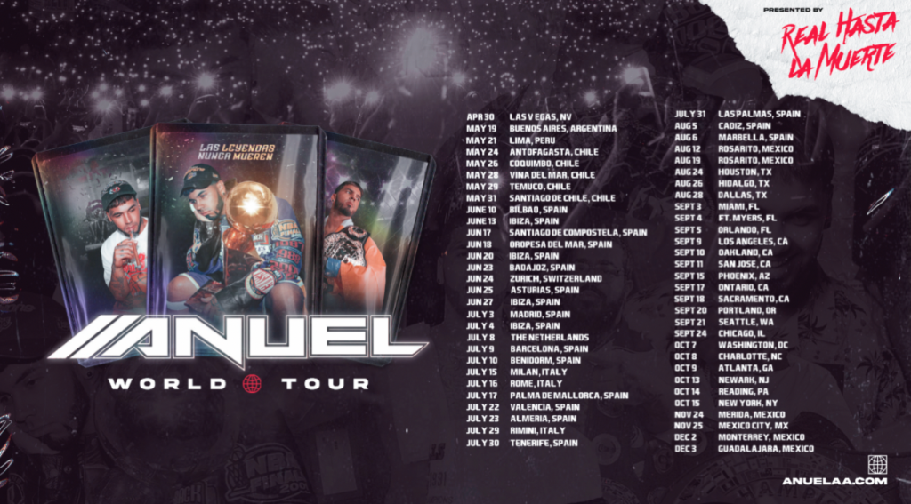 La gira llevará a Anuel AA a presentarse en países suramericanos como Argentina, Perú y Chile, mientras que en España tiene 19 presentaciones, y en Estados Unidos ofrecerá espectáculos del 24 de agosto al 15 de octubre.