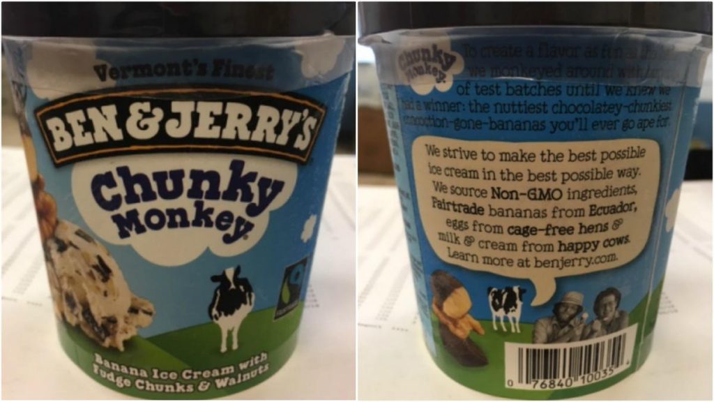 Las pintas de Chunky Monkey afectadas se vendieron con un número UPC de 0 76840 10035 4 y mejores por fechas de AUG2820BH2, AUG2920BH2 y AUG3020BH2.