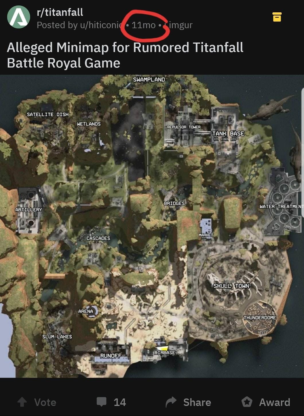 Apex Legends solo ha estado fuera por menos de un mes, pero los jugadores interesados en el juego podrían haber descubierto un modelo aproximado de su mapa del mundo hace 11 meses. los Apex Legends subreddit descubrió una publicación hecha por un usuario hace casi un año en el Caída del Titán subreddit sobre un juego de batalla real de rumor, completo con el "supuesto minimapa" de ese título.