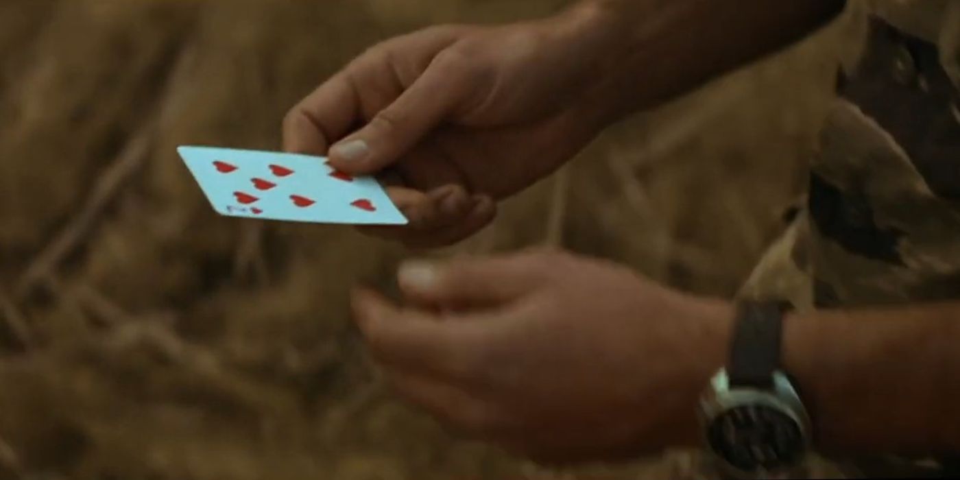 “/> En Apocalipsis ahoraBill Kilgore de Robert Duvall es uno de los personajes más fascinantes y es famoso por ofrecer el “Me encanta el olor a napalm por la mañana” cita. Después de una batalla, se le puede ver dejando tarjetas en los cuerpos de los soldados del Vietcong. En la Guerra de Vietnam, los soldados estadounidenses utilizaron esta táctica para la guerra psicológica, aunque en lugar de cualquier carta como se muestra en la película, Los soldados tradicionalmente tenían paquetes llenos del As de Picas. (a través de Compañía Charlie). La tarjeta se asoció notablemente con el simbolismo de Vietnam, perpetuado en la cultura pop por la canción de Motorhead “Ace of Spades”.