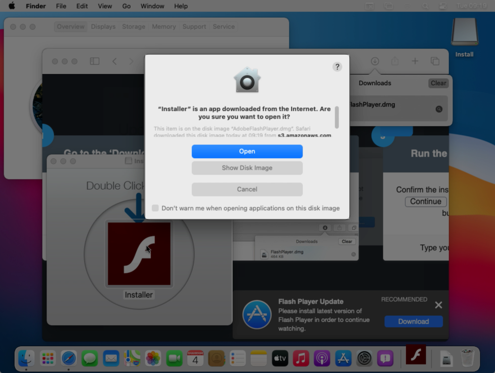 Peter Dantini trabajando con Patrick Wardle, un conocido investigador de seguridad de Mac, encontró una campaña de malware disfrazada de instalador de Adobe Flash. Estas campañas son comunes y han existido durante años, incluso si Flash se usa rara vez en estos días, y la mayoría ejecuta código no anotado, que las Mac bloquean inmediatamente cuando se abren.