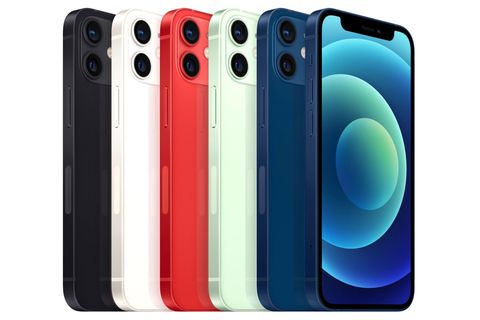 Apple ofrece el marco de aluminio reciclado y la parte posterior de vidrio del iPhone 12 mini en cinco colores: negro, blanco, azul, verde y (PRODUCT) RED. Solo tenga en cuenta que el empaque de este producto carece de cargador y EarPods.