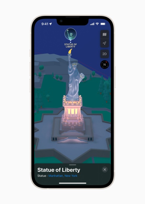 Por ejemplo, Apple Maps mostrará representaciones de lugares famosos, como Coit Tower en San Francisco, Dodger Stadium en Los Ángeles, la Estatua de la Libertad en Nueva York y el Royal Albert Hall en Londres, con más puntos de referencia en el futuro.