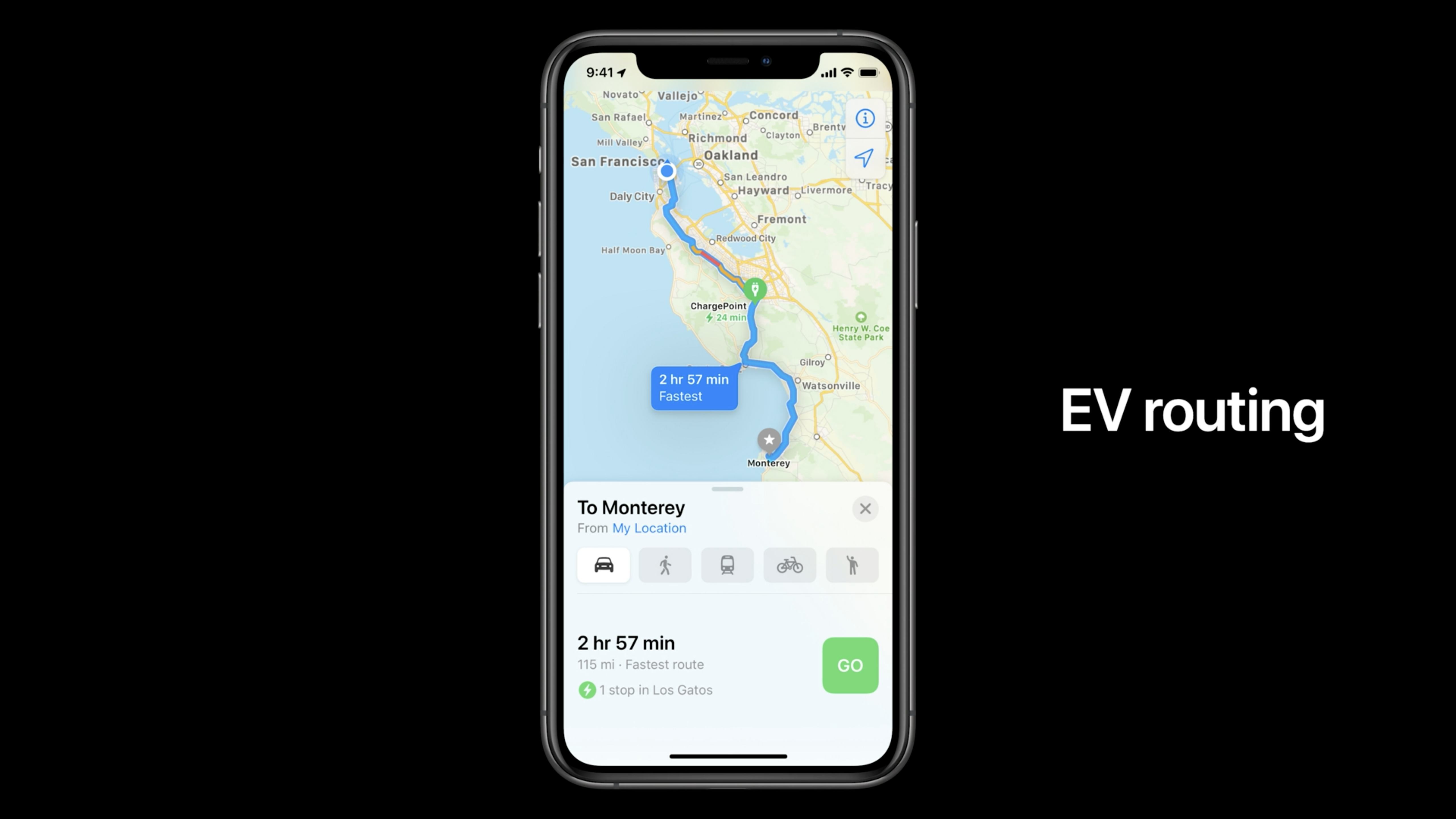 En cuanto al enrutamiento EV, Apple Maps permitirá agregar su automóvil, nombrarlo y elegir un tipo de cargador: Apple se ha asociado con BMW y Ford por ahora. Cuando planifique una ruta, ahora puede seleccionar el automóvil que va a utilizar. Si selecciona su automóvil eléctrico, Apple Maps agregará puntos de carga en el camino. Puede tocar puntos para ver si son gratuitos o pagados y el tipo de conector.