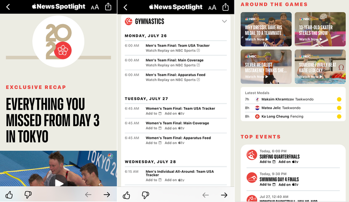 Es difícil mantenerse al día con los Juegos Olímpicos cualquier año, y mucho menos cuando se llevan a cabo en una zona horaria que está 13 horas por delante de ti (si estás en la costa este de EE. UU.). Apple News anunció el lunes una colaboración con NBCUniversal (el titular de los derechos de transmisión de los Juegos Olímpicos en EE. UU.) Para desarrollar resúmenes diarios exclusivos y resúmenes de audio, horarios de eventos y recuentos de medallas para ayudar a los fanáticos a controlar los juegos.