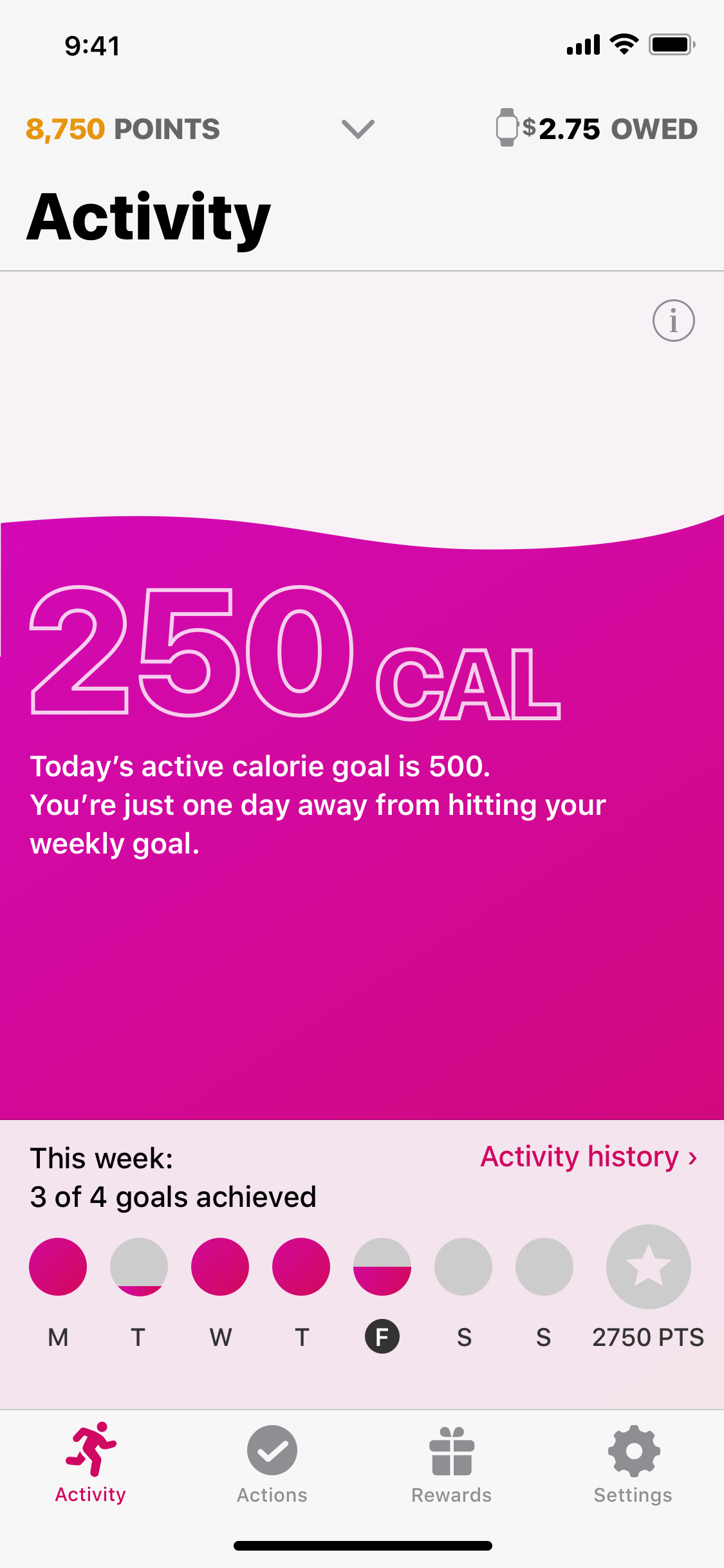 La nueva aplicación Attain consta de cuatro pilares divididos en el logro de objetivos de actividad; mantenimiento de la salud diaria, notificaciones personalizadas de salud; y recompensas por logros.