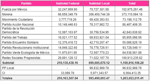 Morena fue el partido político que recibió el monto más alto de sanciones por diversas infracciones, con 373 millones 110 mil 94 pesos, y le sigue nuevo partido Fuerza por México, por un monto de 102 millones 975 mil 261 pesos.