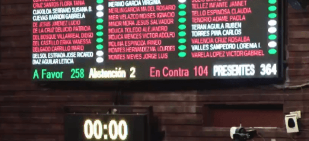 El pleno de la Cámara de Diputados aprobó en lo general con 258 a favor, 104 en contra y dos abstenciones, el proyecto de Ley de Ingresos de la Federación para el ejercicio fiscal de 2020 con 258 votos en favor de Morena y los partidos aliados, 104 en contra del PAN y PRD, y dos abstenciones.