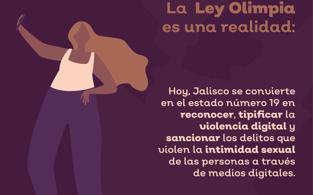 La llamada “ley Olimpia” fue aprobada por el Congreso de Jalisco y quedó tipificado el delito de violación a la intimidad sexual, con penas que irán de cuatro a ocho años de prisión y multas de 86 mil a 173 mil pesos contra quienes -sin el consentimiento de la retratada- exhiban o publiquen en internet imágenes o videos con contenido erótico privado, conocidos como ‘packs’.