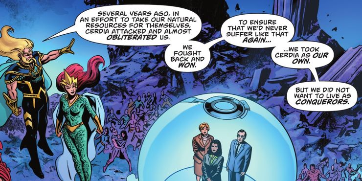 Cuando el país de Cerdia ataca el reino de Atlantis de Aquaman, los atlantes responden no solo tomando represalias sino también anexionando el país.