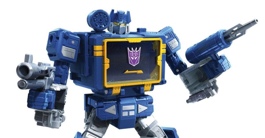 Transformers: Generations War for Cybertron Series-Voyager Soundwave Battle, paquete de 3 (8 años en adelante / Precio minorista aproximado: $ 39.99 / Disponible: 15/10/2020): La figura Voyager SOUNDWAVE de War for Cybertron inspirada en la serie mide 7 pulgadas de alto, se convierte del modo robot al reproductor de cassette en 19 pasos, y incluye accesorios de armas inspirados en la serie. Los fanáticos pueden imaginar SOUNDWAVE, el astuto oficial de comunicaciones que usa la información como su arma más formidable, expulsando RAVAGE y LASERBEAK en la batalla con las 2 figuras de Micromaster incluidas. Tanto RAVAGE como LASERBEAK se convierten a modos de cinta de cassette en 7 y 4 pasos, y caben dentro del modo de reproductor de cassette. Voyager SOUNDWAVE Battle 3-Pack inspirado en la serie War for Cybertron está disponible exclusivamente en Walmart.
