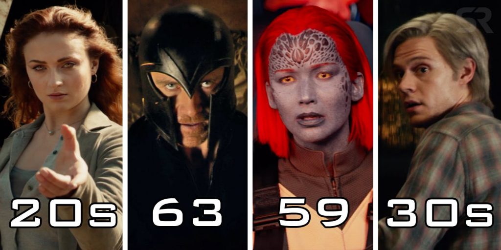 Los siguientes dos mutantes más antiguos incluyen Hank McCoy / Bestia (Nicholas Hoult), el único otro sobreviviente de la "primera clase" original de X-Men. Nació en algún momento en la década de 1940 y parecía estar en sus primeros 20 años durante Primera clase; esto significa Bestia está en algún lugar en sus primeros años 50 durante Fénix Oscuro. Mientras tanto, no está claro qué edad tiene Peter Maximoff / Quicksilver (Evan Peters); Wolverine (Hugh Jackman) dijo que era "un chico" durante Días del futuro pasado pero si Quicksilver era un adolescente en 1973, se unió a los X-Men a finales de los 20 años, una década más tarde. Por lo tanto, Quicksilver debe estar en sus últimos años 30 en Fénix Oscuro.