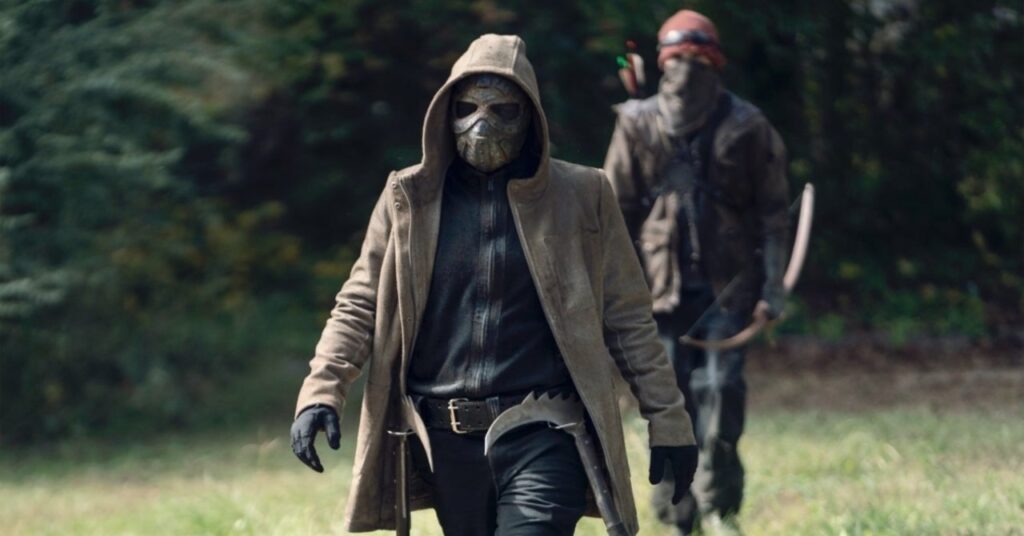 Cuando Maggie se reúne con Daryl (Norman Reedus) y Carol (Melissa McBride) en “Hogar, dulce hogar”, les presenta a sus aliados Cole (Alma americanaJames Devoti) y ElijahCobra Kai‘s Okea Eme-Akwari), también conocido como el hombre enmascarado. Maggie y su hijo Hershel (Kien Michael Spiller) vivieron con la gente de Cole y Elijah hasta que su aldea fue arrasada por los Reapers, su nombre para los asesinos camuflados que perseguían al grupo de Maggie por razones aún reveladas.