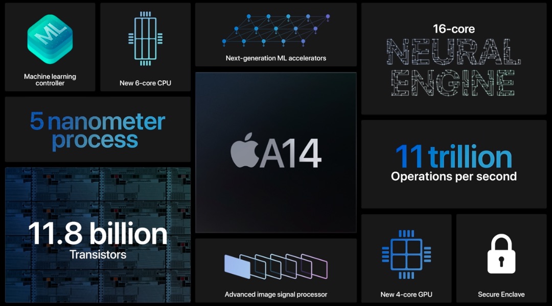 Nuevo chip A14 Bionic: Apple presentó su nuevo chip biónico A14 de cinco nanómetros ultrarrápido, aterrizando en el nuevo iPad Air. Está equipado con cerca de 12 mil millones de transistores, un 40% más que la iteración anterior de chips, y tiene un motor neuronal de 16 núcleos para aplicaciones que dependen del aprendizaje automático y la inteligencia artificial.