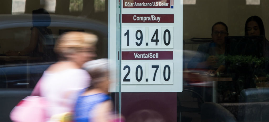 En casas de cambio ubicadas en el Aeropuerto Internacional “Benito Juárez” de la Ciudad de México, el dólar se negocia en un máximo de 19.19 pesos y se adquiere en un mínimo de 17.70 pesos.