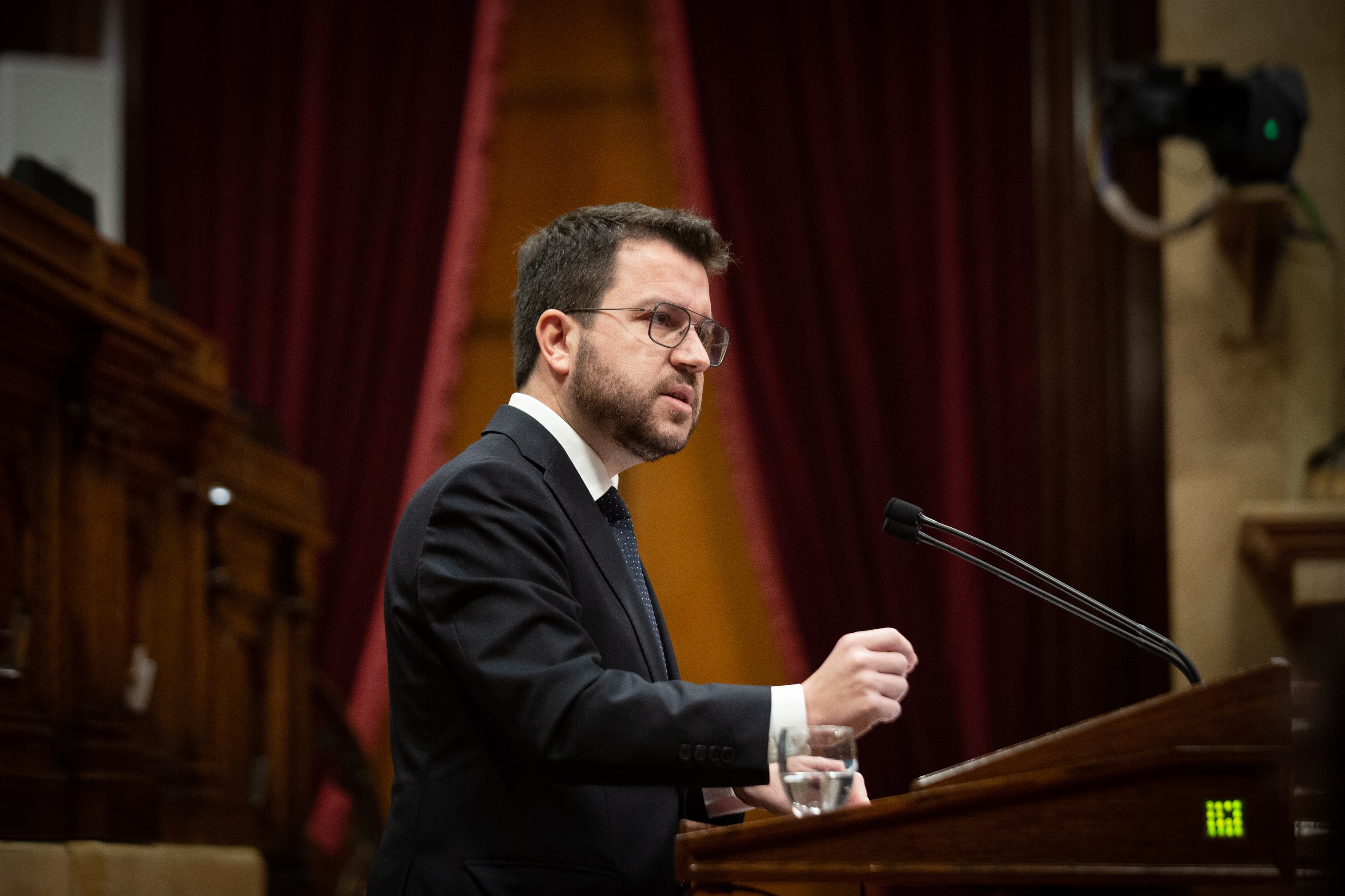 El presidente de la Generalitat, Pere Aragonès, en el pleno del Parlament de este miércoles.DAVID ZORRAKINO – EUROPA PRESS (Europa Press)