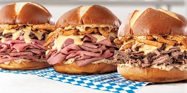 Anclando las ofertas está el enorme Triple Stack, con carne de res estofada con cerveza rallada, rosbif finamente cortado y carne de maíz, todo apilado en un rollo de pretzel tostado. Todo está rociado con una salsa de queso cerveza, mostaza de pub de cerveza y cebollas fritas crujientes. El Double Beef tiene la misma configuración que solo el rosbif, mientras que el Beer Braised Beef presenta el rosbif con los mismos ingredientes. Los tres sándwiches están disponibles de inmediato en las ubicaciones participantes por un tiempo limitado con precios que comienzan en $ 5.99.