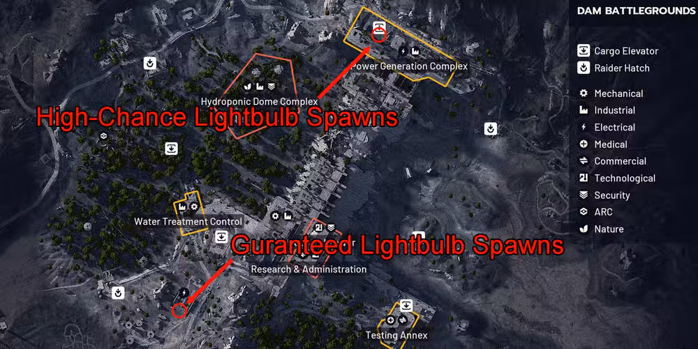 Si bien las baterías industriales son algo que tendrás que encontrar a través del saqueo normal, algunos mapas como Dam Battlegrounds tienen varios engendros garantizados para que aparezcan las bombillas, lo que los convierte en excelentes lugares para detenerte mientras cultivas cualquier elemento del evento.
