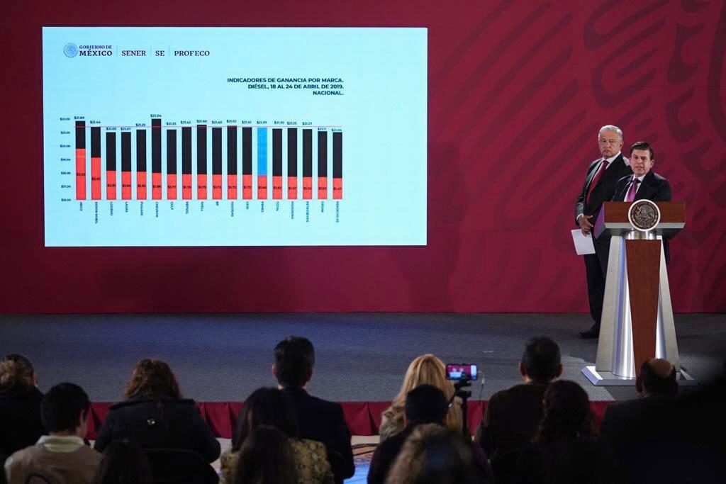 En conferencia de prensa matutina, el funcionario federal añadió que Pemex vendió en promedio la gasolina en 19.85 pesos, con un margen de ganancia de 1.54 pesos por litro; mientras que el margen más bajo fue para Rendichicas, de 1.28 pesos, con un precio a la venta de 19.56 pesos.
