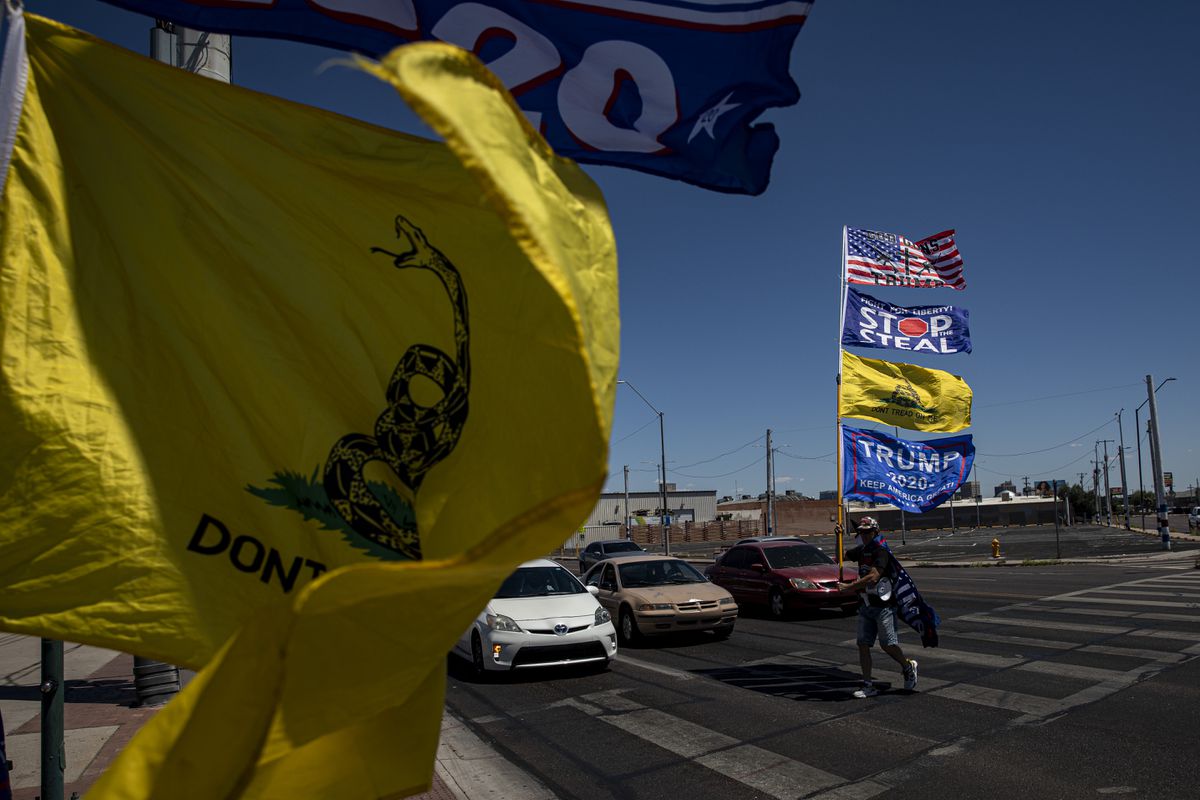 Un grupo de patriotas, como se llaman a sí mismos los simpatizantes de Donald Trump, se reunió el pasado 6 de enero en el centro de Phoenix, la capital de Arizona, para celebrar un año de la toma del Capitolio. Para muchos estadounidenses aquel fue un oscuro episodio en la historia del país, pero para los más fervientes seguidores del expresidente fue un momento de “orgullo” y defensa del voto ante lo que consideran el fraude de 2020.