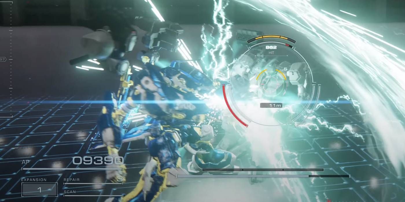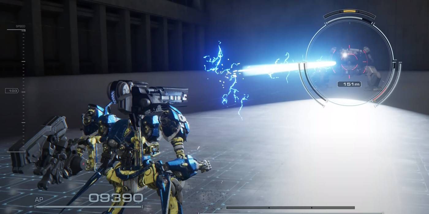 Otra gran arma cinética para elegir es la LR-036 Curtis, un rifle lineal que podría confundirse con un arma de energía en la Asamblea. Esta arma actúa de manera diferente a la mayoría de las armas cinéticas, actuando casi como un francotirador de largo alcance, capaz de apuntar a enemigos en la distancia. Si mantienes presionado el botón de disparo con esta arma, tu robot disparará un tiro concentrado del rifle que causa un daño significativo y se tambalea.