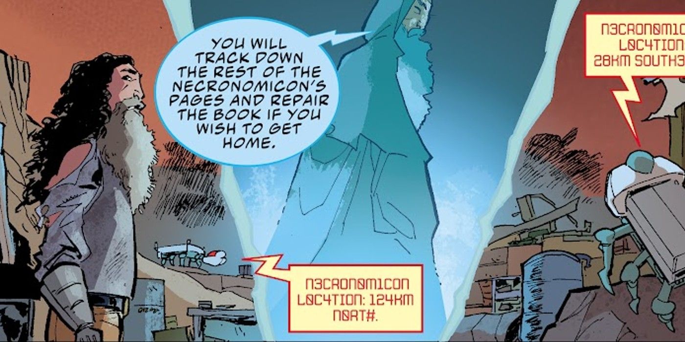 “/> El cómic examina el final alternativo de la película donde, en lugar de regresar al presente, realizar el hechizo obligó incorrectamente a Ash a ir al futuro lejano de 2093. Allí, el Necronomicon todavía existe, pero es claramente un caparazón inferior de su antigua gloria. Incluso considerando todo el caos que ha causado el libro, en toda la franquicia y en el género en su conjunto, es un espectáculo agridulce para los fanáticos del terror.