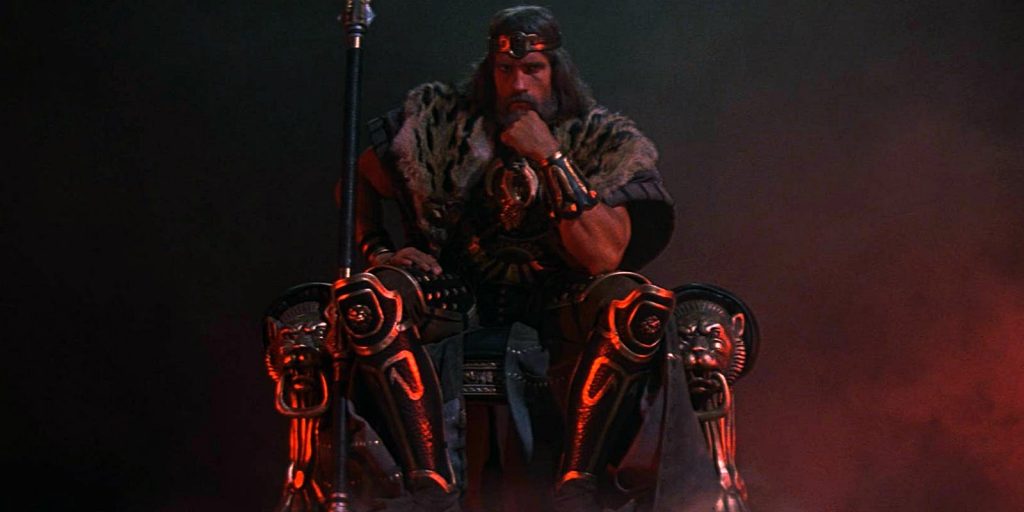 "Cuando se trata de la película, lo triste de todo esto es cuando hay una propiedad como esta, la propiedad de Robert E. Howard … cuando alguien compra estos derechos, esa gente ahora posee los derechos y tiene su propia visión de lo que quieren hacerlo y el chico que tiene los derechos es un chico joven y está tratando de descubrir cómo atravesar Hollywood y esto no es fácil de hacer. Entonces hay gente que le dice: '¿por qué no empiezas con una serie de televisión y luego él negocia una serie de televisión y eso se derrumba? Y luego se va tal vez a Netflix y eso se desmorona. Entonces decide hacer una película tal vez … pero mientras tanto, hemos intentado convencerlo durante años de que el camino a seguir es regresar y contratar a un gran director y hacer otra película de Conan y que yo haga de King. Conan, cuando Conan tiene como 70 años y está disgustado por sentarse en el trono y ser el rey y luego sucede algo. Realmente no está tan lejos de crear un script terminado. El único que realmente tiene que apretar el gatillo es la gente que posee los derechos de Conan para hacer una película. Vayamos a Netflix o sea quien sea, contratemos un director que sea muy creativo y pueda elevar el proyecto para convertirlo en un proyecto ganador. Espero que se haga muy pronto porque creo que es una gran idea ".