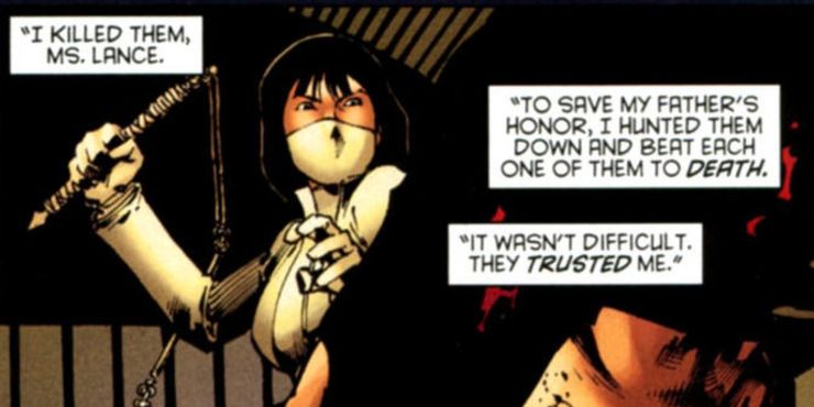 Esto llevó a su padre a verla elegida para ser uno de los Hermanos. Algunos aspectos de su origen comparten una similitud con la historia de fondo original de Sara Lance en Arrowverse, donde era miembro de la organización oscura conocida como la Liga de Asesinos.