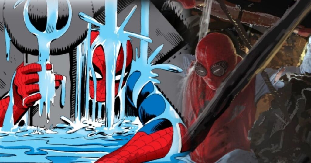 El artista conceptual de Marvel Studios, Ryan Meinerding, jefe de desarrollo visual de Spider-Man: regreso a casa, comparte arte conceptual detrás de una secuencia clave inspirada en el clásico de Stan Lee y Steve Ditko Asombroso Hombre Araña # 33. El número de 1966, “The Final Chapter”, encuentra a Spider-Man atrapado debajo de toneladas de escombros por el enemigo armado con metal, el Doctor Octopus, revelado previamente como la identidad secreta del “Planificador maestro”, mientras se encontraba en una misión para recuperar un suero capaz de salvando a su tía May moribunda. Inmovilizado bajo los restos de un laboratorio inundado y angustiado por la idea de fallarle a su amada tía, un hombre araña agotado reúne todas sus fuerzas para liberarse en un momento de triunfo.