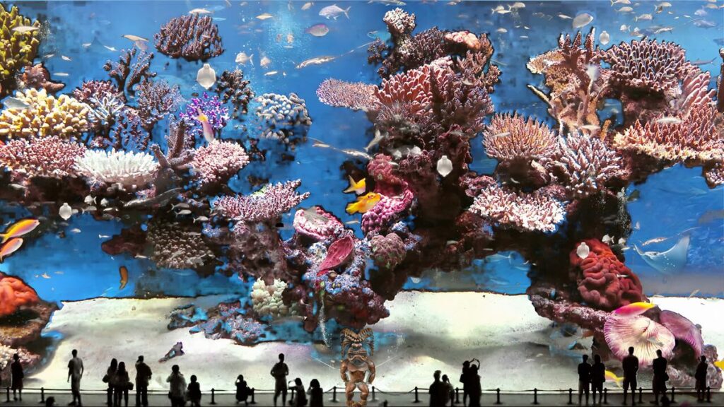 Entre las obras vemos How We See It, el mapa mental invisible de la artista Alice Hackney que el visitante descubre con linternas de luz ultravioleta, como un antropólogo de la ciencia haría su trabajo de campo durante una investigación medioambiental. La obra multimedia Dust invita a hundir las manos en un bol lleno de polvo para después soplarlo. Treasury of Tethers es un diccionario en blanco de términos del mundo natural cuyos significados deben ser revelados por el ingenio de los espectadores. Nature’s ­Kitchen es una instalación de la microbióloga Katja Lehmann en la que se prueban bebidas y comidas como el kéfir o la cambucha. Y la obra de la grabadora británica Jenny Lines estudia el cambio de humor de los paisajes (los paisajes se quejan por el deterioro medioambiental). Lines trabaja en colaboración con laboratorios alarmados por el estado de los océanos y el aumento de los gases de efecto invernadero.