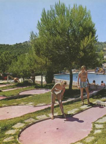 Otros eran profesionales de la propaganda, como Josep Planas Montanyà, poseedor del monopolio de la postal turística y propietario de Casa Planas, fundada en Mallorca en 1949. Llegó a tener un helicóptero propio (¡que le alquilaba a la Guardia Civil!) que le servía para tomar imágenes aéreas de la explotación costera y que después se usaron como modelo en las economías emergentes de Asia y América latina. Para Es Baluard, su nieta, la artista Marina Planas, ha compuesto un mosaico de 600 fotografías del archivo (algunas de carácter íntimo o familiar, donde aparecen personajes célebres como Joan Fontaine, Chaplin, Fraga, Mussolini con Franco) con textos e imágenes extraídos de Internet que ilustran la España del desarrollismo. Finalmente, el IVAM aporta un conjunto documental armado por Alicia Fuentes, con carteles, folletos, revistas y fotolibros del levante español publicitado como la “periferia del placer”, donde el turista podía vivir experiencias auténticas en “un edén al sur de Europa” antes de convertirse en lisérgicas con la ruta del bacalao. De ahí a la virtualidad del sofá de casa solo había que dar un paso.