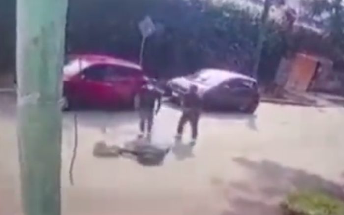 Según se observa en el video, la mujer carga con una bolsa en la cual lleva lo que parece ser una computadora, la cual se resiste a entregar. En el forcejeo con los dos hombres, le dan un balazo en la cabeza y queda tendida en el suelo.