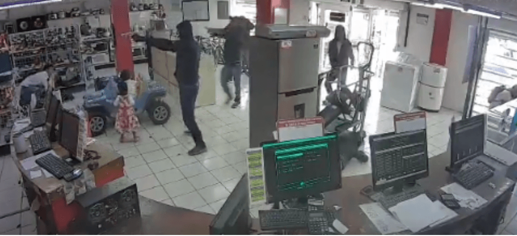 Al menos cuatro sujetos llegaron al establecimiento para atracarlo, mientras, dos niños jugaban con un auto infantil. Al momento del intercambio de disparos entre un  guardia de seguridad privada y el asaltante, uno de los menores sale corriendo y se esconde; el otro infante se quedó expectante unos segundos y después, lentamente se aleja para esconderse.