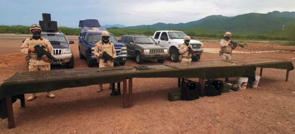 La Secretaría de la Defensa Nacional (Sedena) informó este jueves que  que elementos del Ejército Mexicano realizaron el aseguramiento de 3 vehículos blindados, droga y miles de cartuchos en el municipio de Sahuaripa, Sonora.
