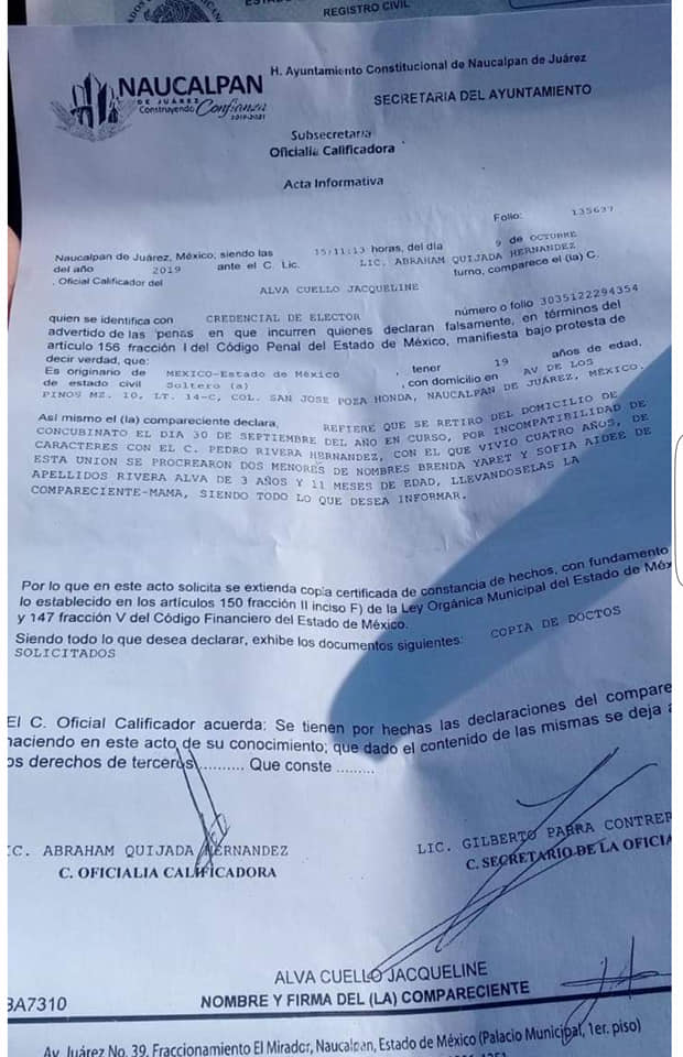 De acuerdo con información divulgada en la página Los Machos nos matan en México, el exesposo de la Jacqueline, identificado como Pedro Rivera, retuvo a las niñas al menos una semana previo al homicidio y luego la joven acudió al domicilio de él con la promesa de que le entregaría a las menores.