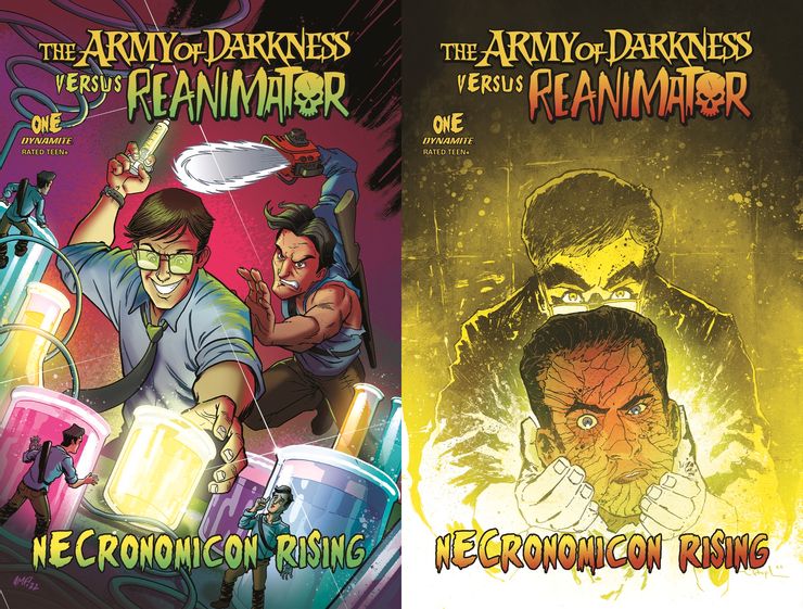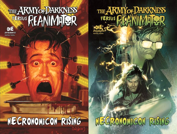 Ahora, los dos están a punto de enfrentarse en la revancha de la década en el emocionante comunicado de prensa de Dynamite. El Ejército de la Oscuridad contra Re-Animator: Necronomicon Rising, de Erik Burnham y Eman Casallos, comenzará este mes de julio con un salto inmediato a la acción. Según Dynamite, la historia comenzará cuando “una excavación arqueológica revela inesperadamente un importante artefacto del mundo de Army of Darkness.” Actualmente se desconoce cuál es el artículo, tal vez el Necronomicon nuevamente o la Kandarian Dagger, pero la mala noticia es “termina en las peores manos posibles: el loco, verdaderamente loco Dr. Herbert West.” Esto ya establece un conflicto interesante ya que Ash tiene que enfrentarse a West nuevamente para salvar a la humanidad de la amenaza de los Deadites. Sin embargo, conociendo las raíces lovecraftianas de West, también es posible que Ash pueda estar llevando su batalla a niveles cósmicos también. No hay muchos más detalles de la trama de lo que tiene reservado esta secuela cruzada, pero Dynamite promete que lo hará “¡presenta mucha emoción, acción Deadite y suero de reanimación brillante!“