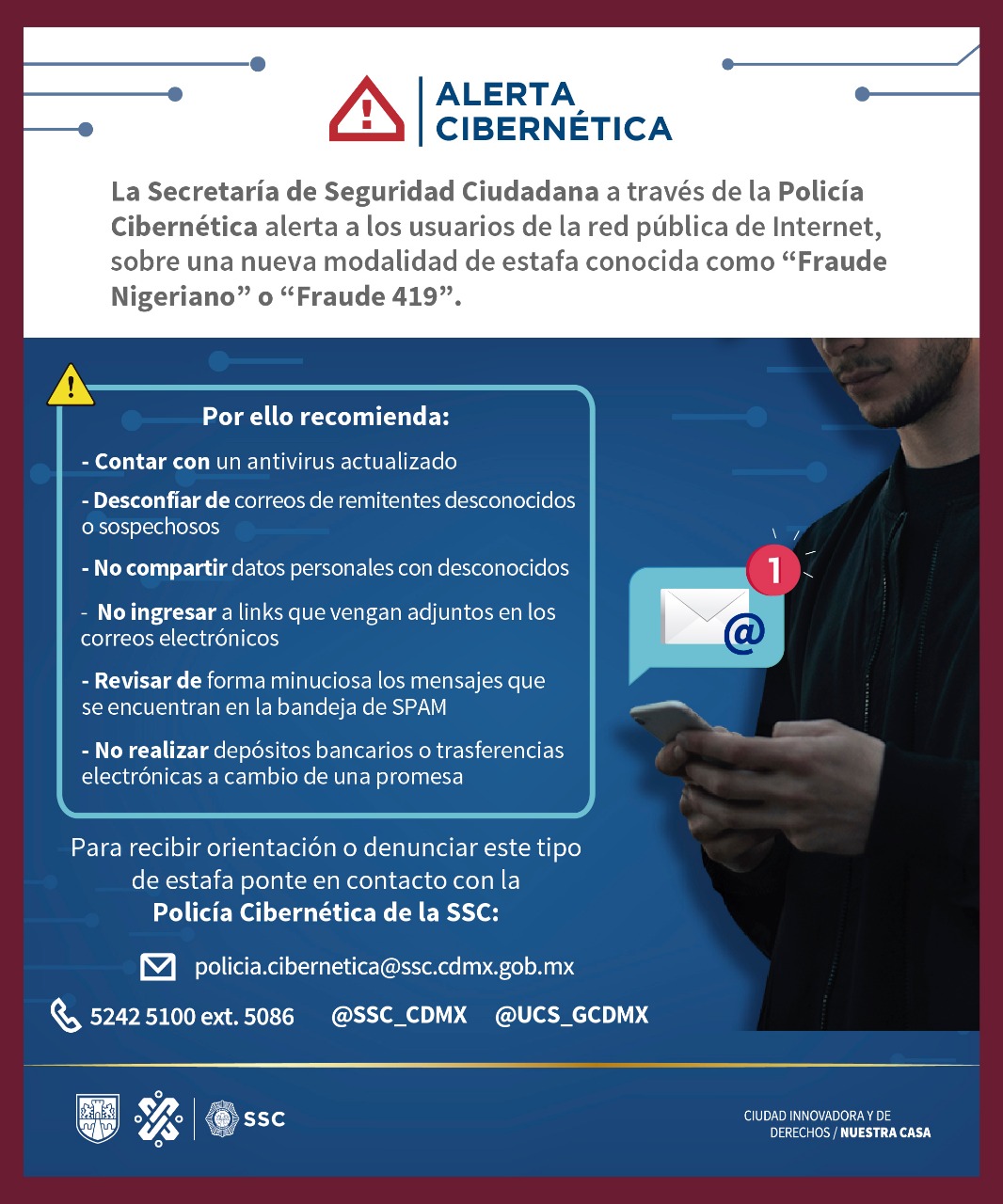 En la Ciudad de México, la Policía Cibernética detectó una nueva modalidad de estafa conocida como “Fraude Nigeriano” o también como “Fraude 419”.
