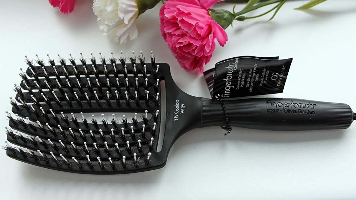 Un ejemplo es este cepillo de la marca Olivia Garden. Se llama FingerBrush, está fabricado con cerdas de jabalí y nailon, y es perfecto para desenredar suavemente la melena. Tiene un diseño único, con un mango ligero y ergonómico, y sus aberturas garantizan un flujo de aire óptimo para no resecar el cabello, seque más rápido, y luzca brillante.