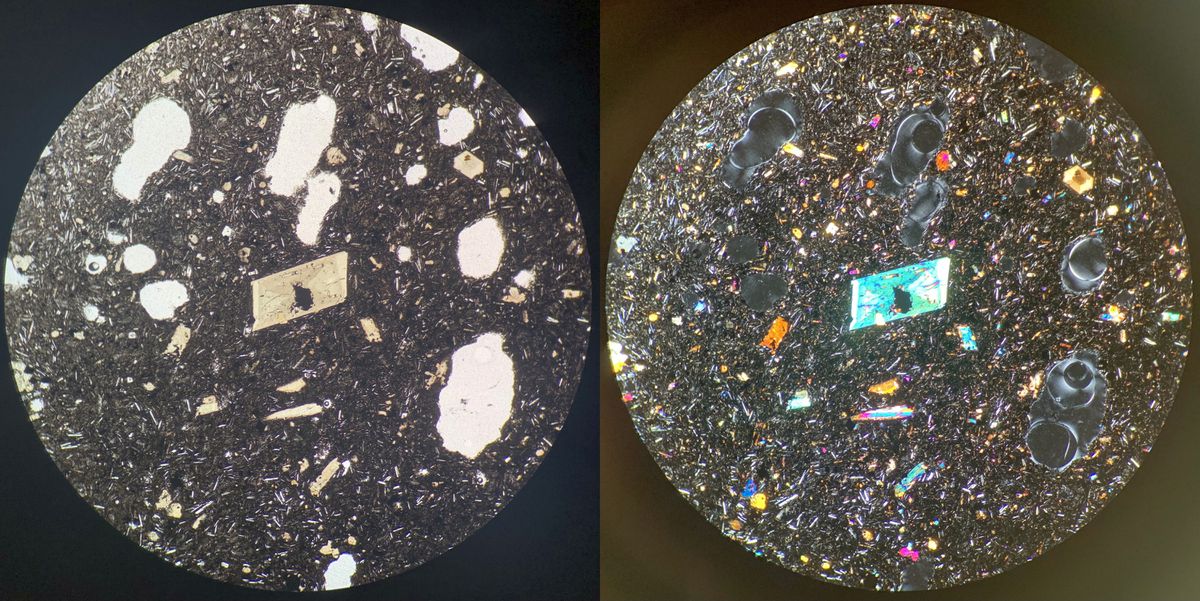 Lo de diseccionar es literal. En el laboratorio del departamento mineralogía y petrología de la Facultad de Ciencias Geológicas de la Universidad Complutense de Madrid (UCM) recibieron por correo las primeras muestras de la lava de La Palma. Para analizarlas, las cortaron en láminas de rocas arrancadas a la colada que se había detenido ante la iglesia de Todoque antes de engullirla. Como si fuera embutido, la laminaron en capas de 0,3 milímetros y las estudiaron con un microscopio petrográfico.