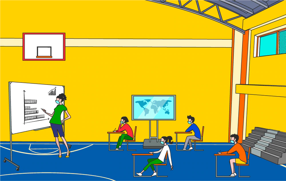 La siguiente recreación de cómo son los nuevos centros educativos se basa en los elementos comunes de los 17 planes autonómicos, las guías de medidas higiénicas y sanitarias aprobadas por los ministerios de Educación y Sanidad y el acuerdo alcanzado por Gobierno y comunidades para el nuevo curso.