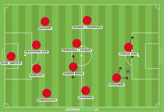 Concretamente, lo hace con fútbol práctico basado en la solidez defensiva y el juego directo. Estructurado en un clásico 4-4-2, esta Noruega no necesita el balón para hacer daño al rival y centra sus esfuerzos tanto en minimizar los daños cuando el rival ronda su área como en aprovechar las oportunidades que se le presentan durante las diferentes fases del juego.
