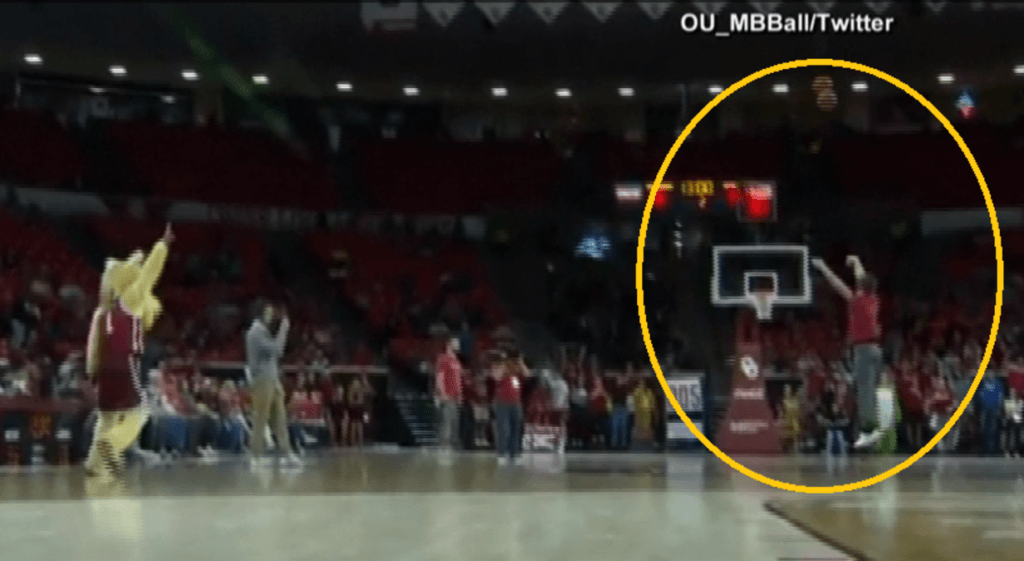 La Universidad de Oklahoma ideó una forma poco ortodoxa de “rifar” un beneficio estudiantil en el entretiempo de un partido de baloncesto universitario y que implicaba una proeza que no todos logran.
