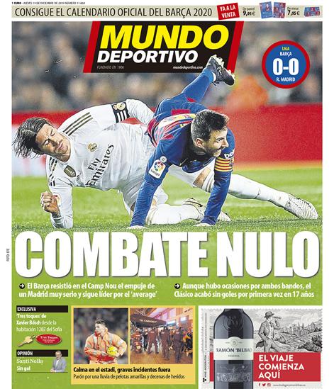 Deportivo (Panamá) señaló el liderato del Barça tras un choque poco vistoso. Clarín (Argentina) remarcó el 0-0 y Depor (Perú) explicó que “Barça y Madrid no se hicieron daño”. Finalmente, A Gaztea Esportiva recalcó la falta de gol merengue.