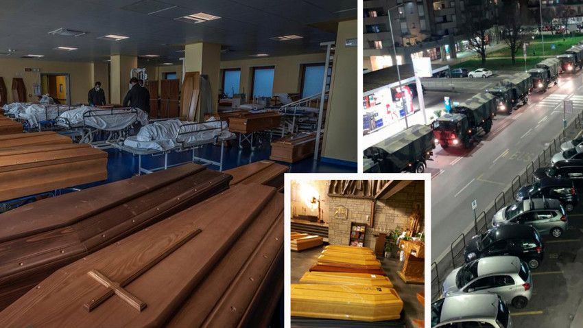 Según el diario local L’Eco di Bergamo, los vehículos militares sacaron cerca de sesenta féretros para incinerar los restos en instalaciones de varios municipios que se han ofrecido a ello.